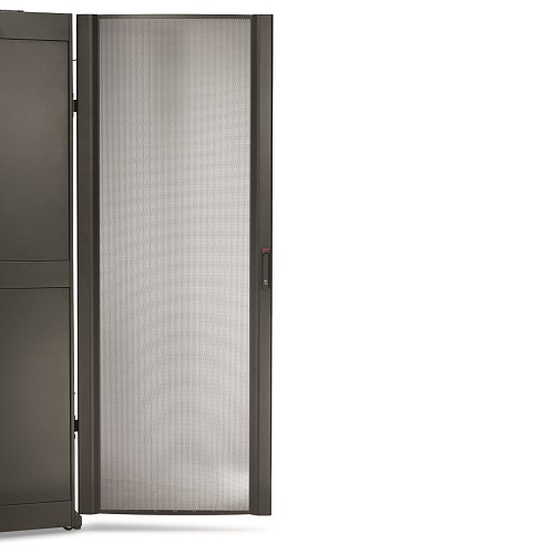 - Суммарная площадь вентиляционных отверстий в дверцах превышает 830 кв. дюймов (5355 кв. см.) Для нормальной работы современных серверов необходима адекватная вентиляция. Шкафы NetShelter оснащаются полностью перфорированными передними и задними дверцами, которые обеспечивают вполне достаточную вентиляцию для серверов и сетевых устройств. Общая площадь перфорационных отверстий на передних дверцах составляет 844 кв. дюйма (5445 кв. см), что превосходит требования большинства производителей серверов. Этого достаточно для обеспечения надлежащего охлаждения большинства конфигураций, а для инсталляций высокой энергетической плотности Schneider Electric выпускает специальное дополнительное вентиляционное оборудование, такое как блоки распределения воздуха Air Distribution Unit и блоки отвода воздуха Air Removal Unit.